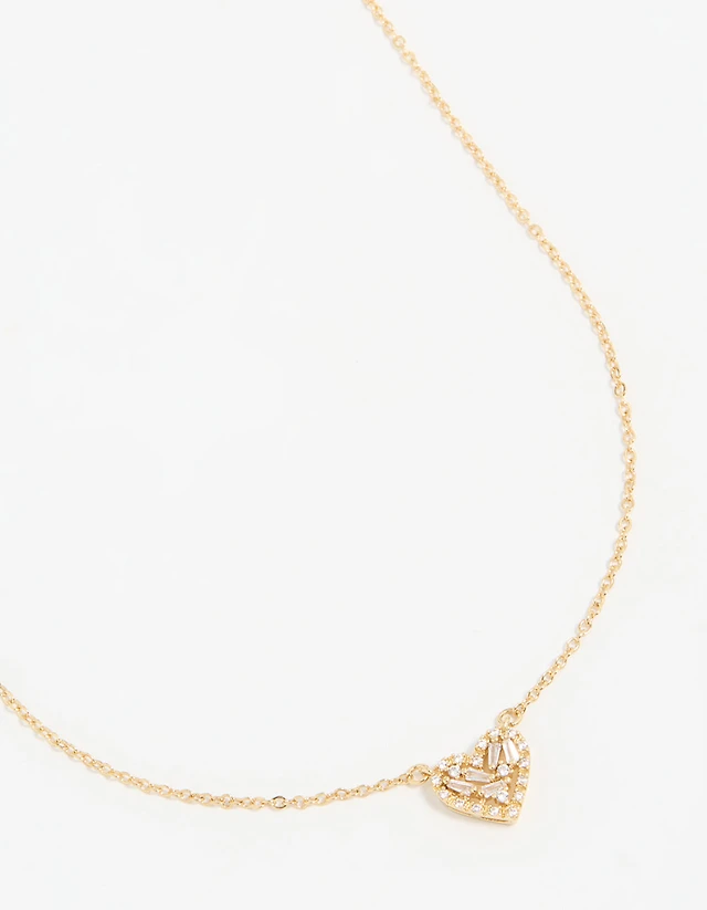 Gold Plated Cubic Zirconia Baguette Heart Pendant Necklace