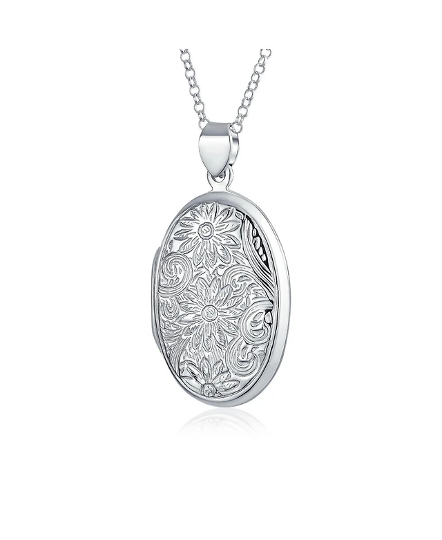 Bling Jewelry Embossed Photo Round Circle Scroll Flower Lockets That Hold Pictures Sterling Silver Locket Necklace Pendant