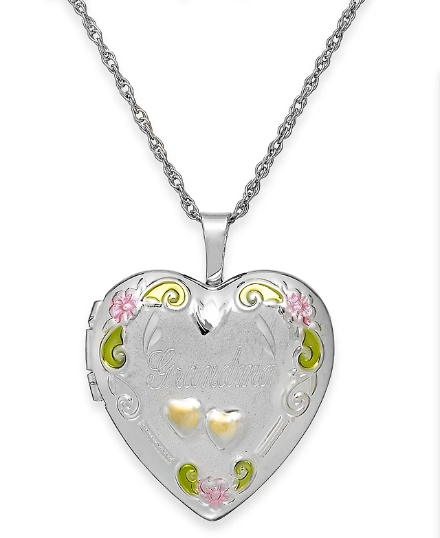 Grandma Painted Heart Locket in Sterling Silver