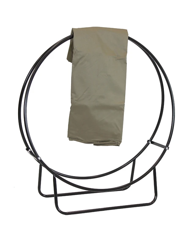Outdoor Steel Firewood Log Rack Holder with Weather-Resistant Heavy-Duty Polyester Log Rack Cover - 30" - Black