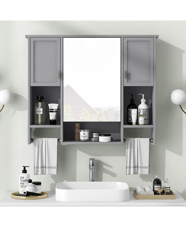 Casainc 30'' Mirror Medicine Cabinet with Open Shelves, Doors & Adjustable Shelf for Bathroom Storage