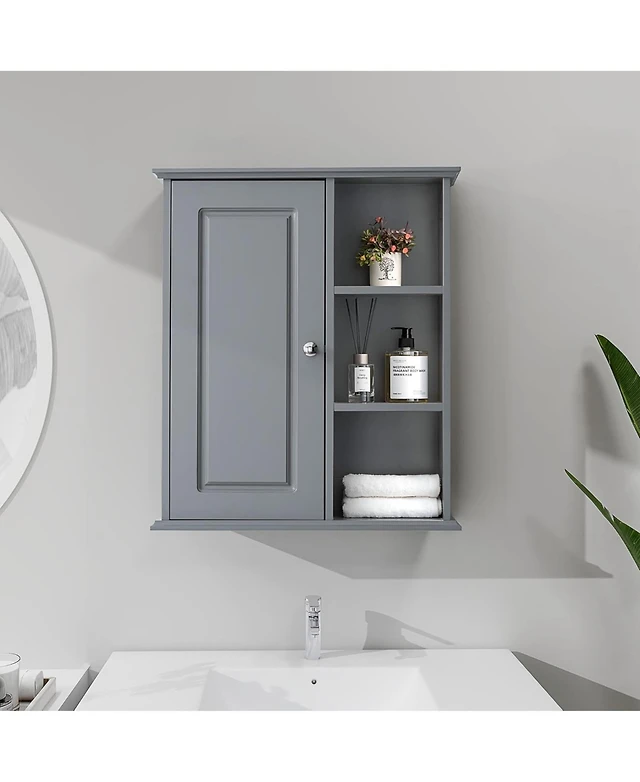 Slickblue Bathroom Wall-Mount Cabinet with Louver Doors, Wood Finish for Stylish Storage