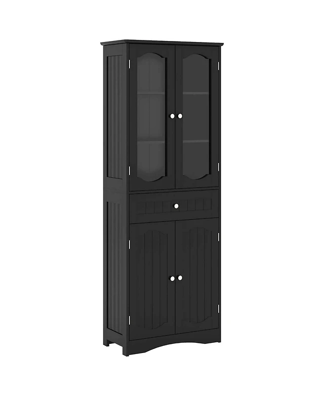 64.5" Tall Bathroom Cabinet with Tempered Glass Doors Adjustable Shelves