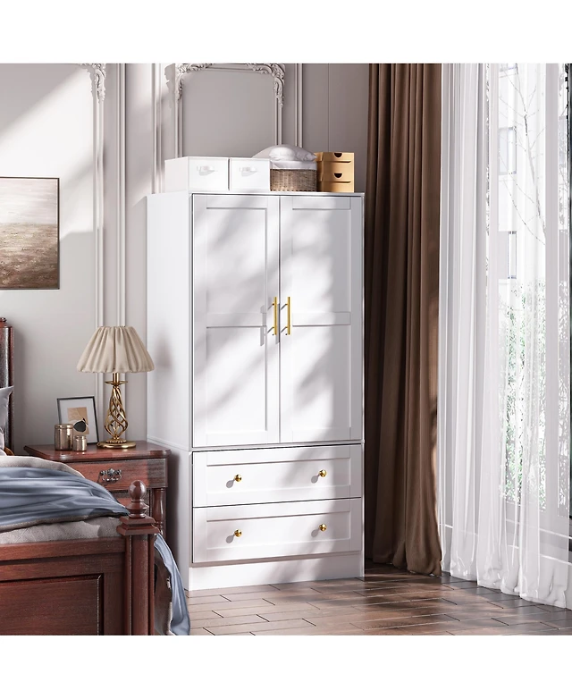 Gymax Pantry Cabinet 67'' Tall Kitchen Floor w/ 2 Removable Shelves Drawers