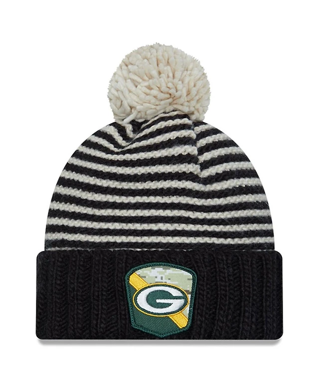 Women's New Era Black Green Bay Packers 2023 Salute To Service Cuffed Pom Knit Hat