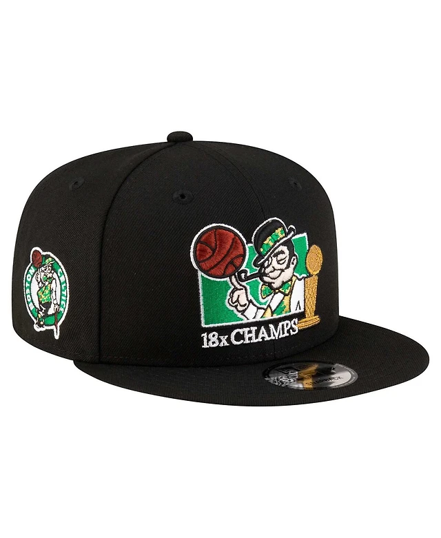 New Era Men's Black Boston Celtics Lucky 18x Champs 9FIFTY Snapback Hat