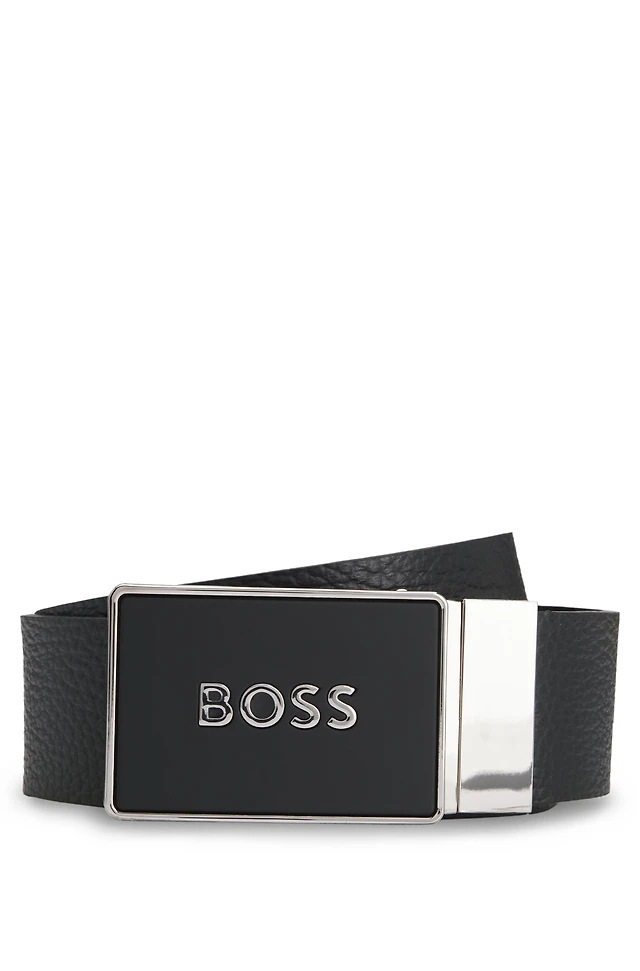 Italian-leather belt with logo-engraved buckle
