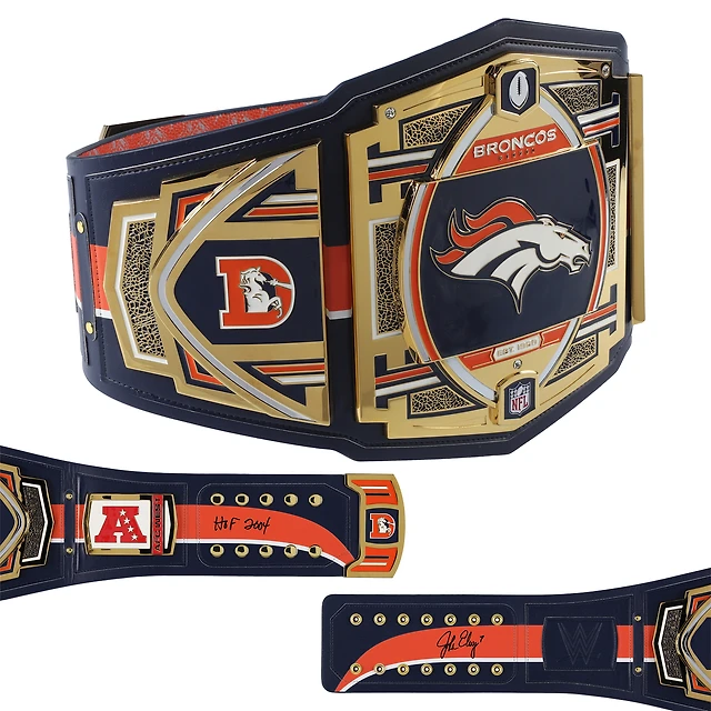 John Elway Denver Broncos Autographed WWE Title Belt with "HOF 2004" Inscription
