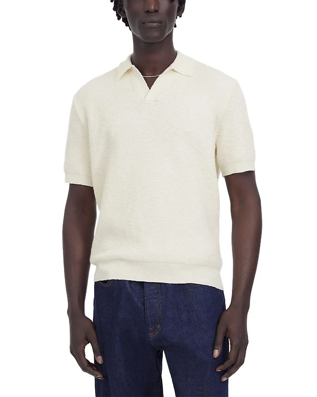 Tonal Stitch Front Button Sweater Polo
