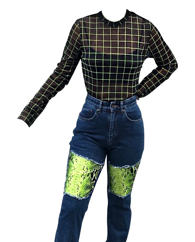 THE RAGGED PRIEST: HIGH WAISTED LIME SNAKESKIN MOM JEAN