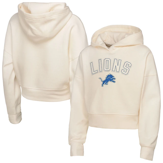 Men's Antigua Heathered Black Detroit Lions Action Chenille Pullover Hoodie