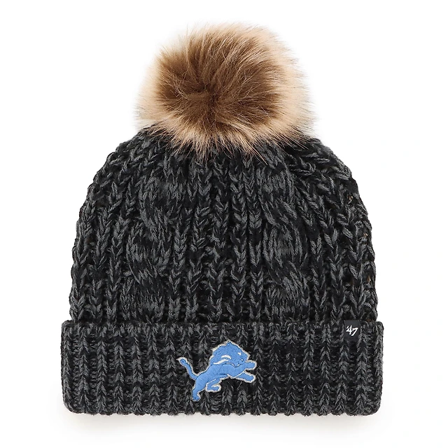 Women's '47 Black Detroit Lions Meeko Cuffed Knit Hat with Pom