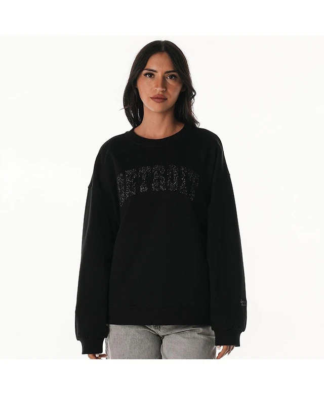 The Wild Collective Women's Black Detroit Lions Rock Crystal Oversized Crewneck Sweatshirt