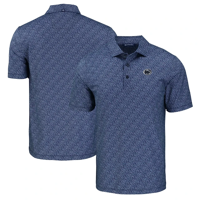 Men's Cutter & Buck Navy Detroit Lions Big & Tall Advantage Tri-Blend Pique Long Sleeve Polo