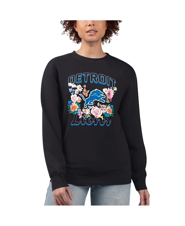 G-iii 4Her by Carl Banks Women's Black Detroit Lions Flower Logo Graphic Fleece Pullover Sweatshirt