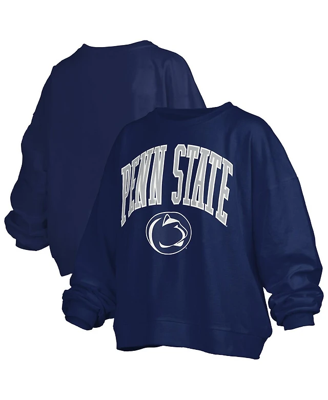 Pressbox Women's Navy Penn State Nittany Lions Janise Arch Over Logo Waist Length Oversized Pullover Sweatshirt
