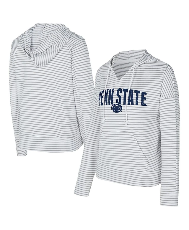 Concepts Sport Men's White/Gray Penn State Nittany Lions French Terry Striped V-Neck Pullover Hoodie