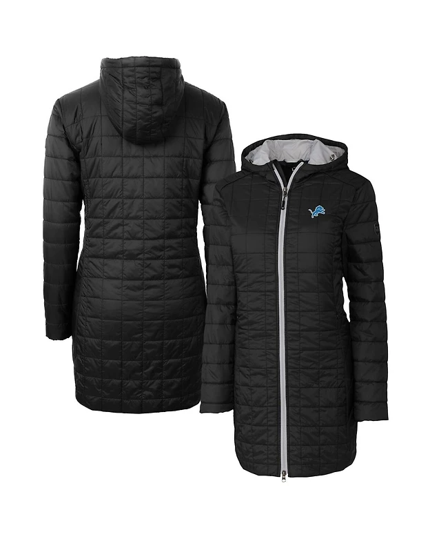 Women's Cutter & Buck Black Detroit Lions Throwback Logo Rainier PrimaLoft Eco Printed Full-Zip Puffer Vest