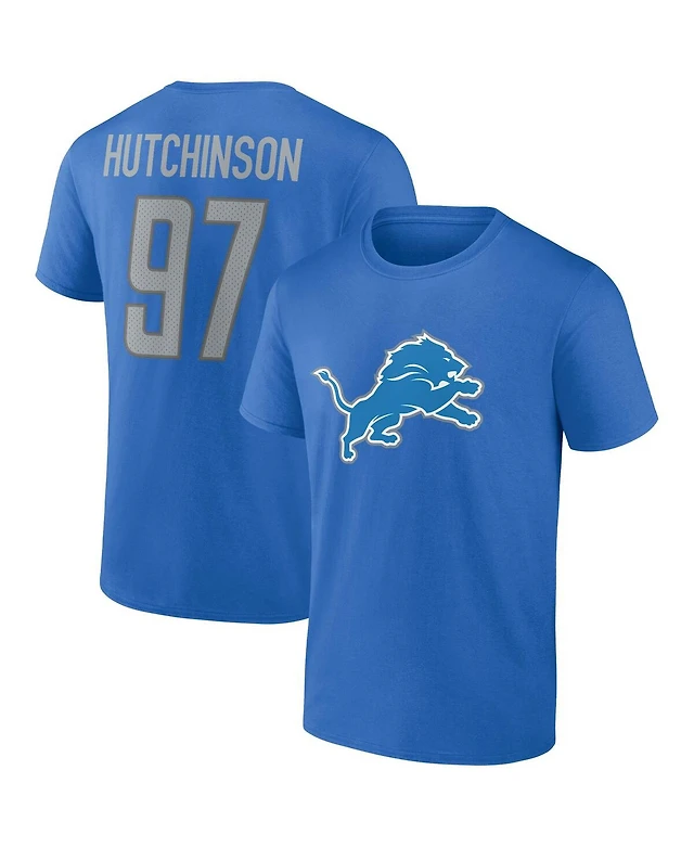 Men's Fanatics Aidan Hutchinson Blue Detroit Lions Player Icon Name and Number T-shirt