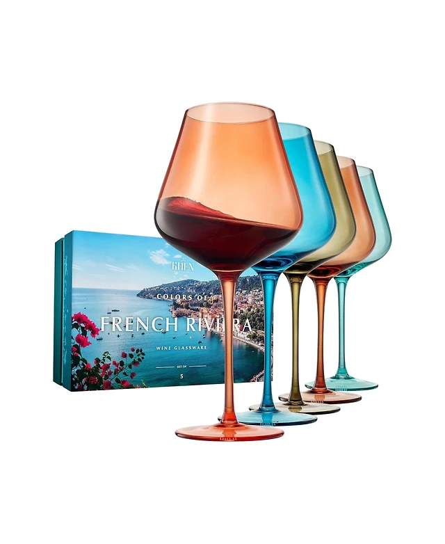 The Wine Savant Colors of French Riviera Coastline Wine Glasses, Set of 5