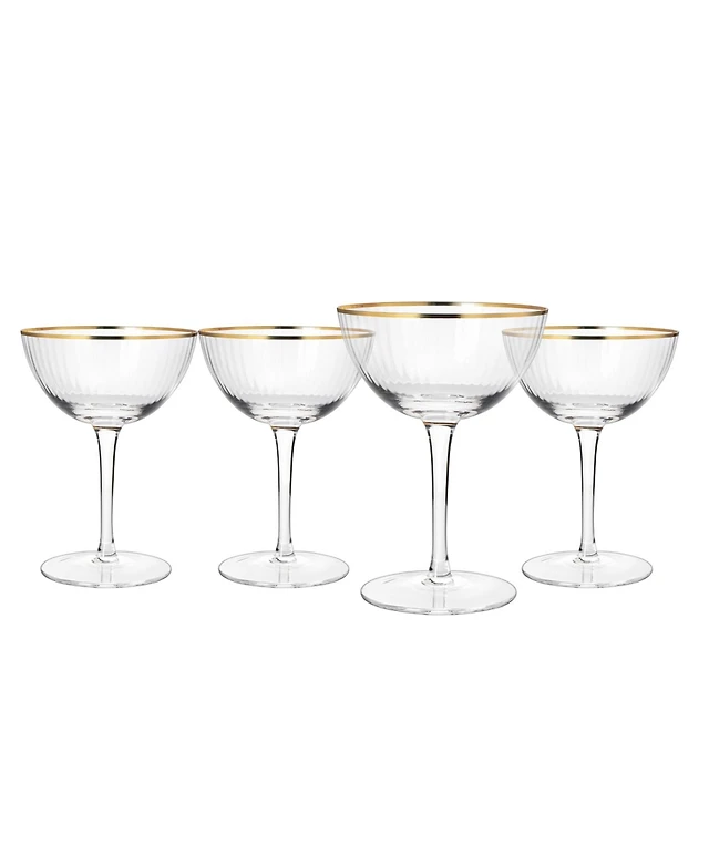 The Wine Savant Gold Rim Coupe Glasses, Set of 4