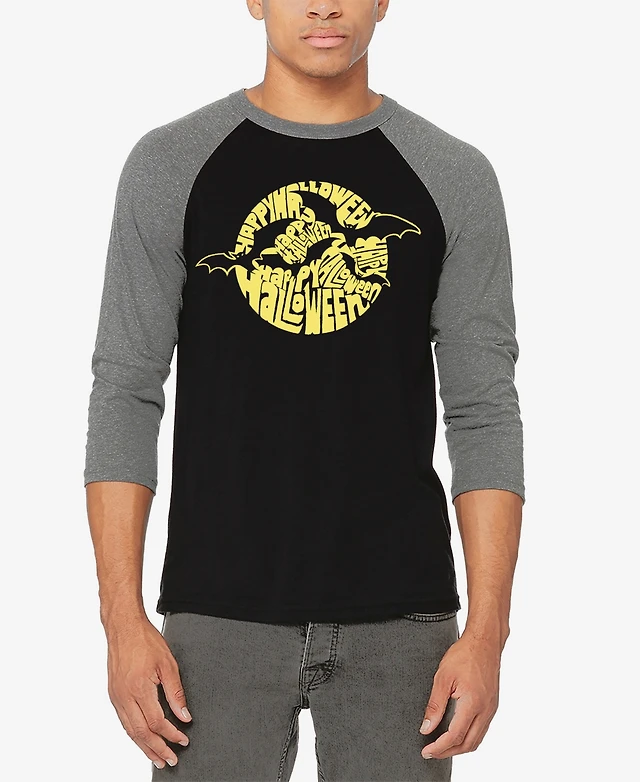La Pop Art Men's Raglan Baseball Halloween Bats Word T-shirt
