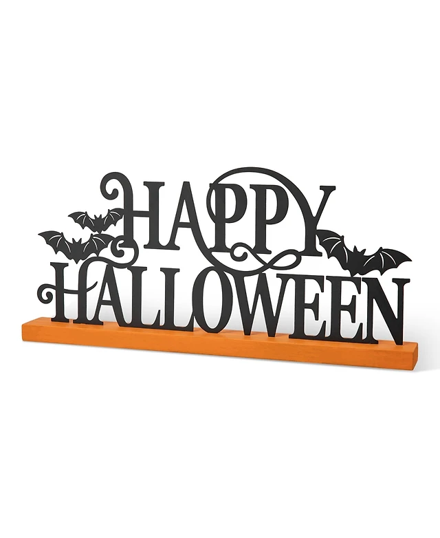Glitzhome 18" L Halloween Wood Metal "Happy Halloween" Table Decor