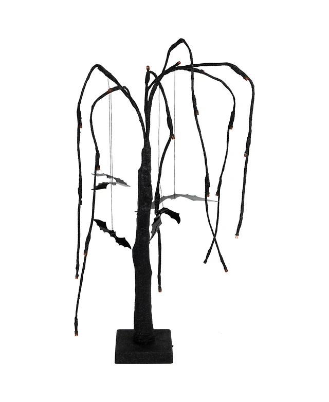 Northlight 24" Led Lighted Black Glittered Halloween Willow Tree with Bats - Orange Lights