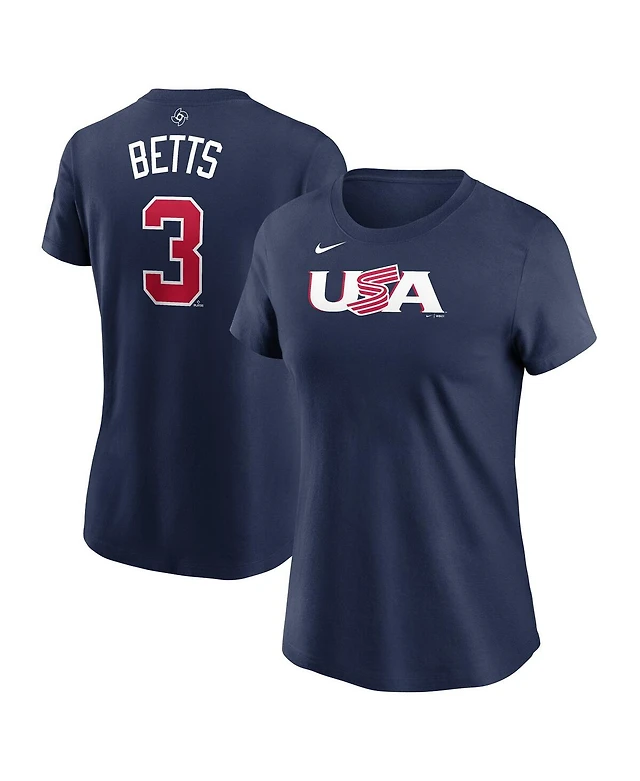 Women's Nike Mookie Betts Navy Usa Baseball 2023 World Baseball Classic Name and Number T-shirt