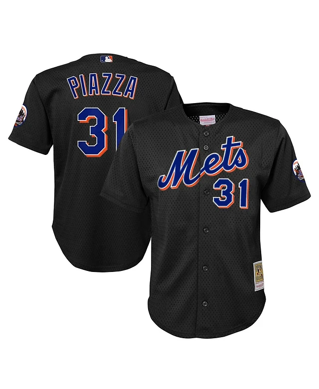 Big Boys Mitchell & Ness Mike Piazza Black Distressed New York Mets Cooperstown Collection Mesh Batting Practice Jersey