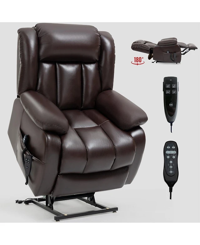 Dual Motor Infinite Position Up to 350 Lbs Leatheraire Power Lift Recliner Chair, Heavy Duty Motion Mechanism with 8-Point Vibration Massage and Lumba