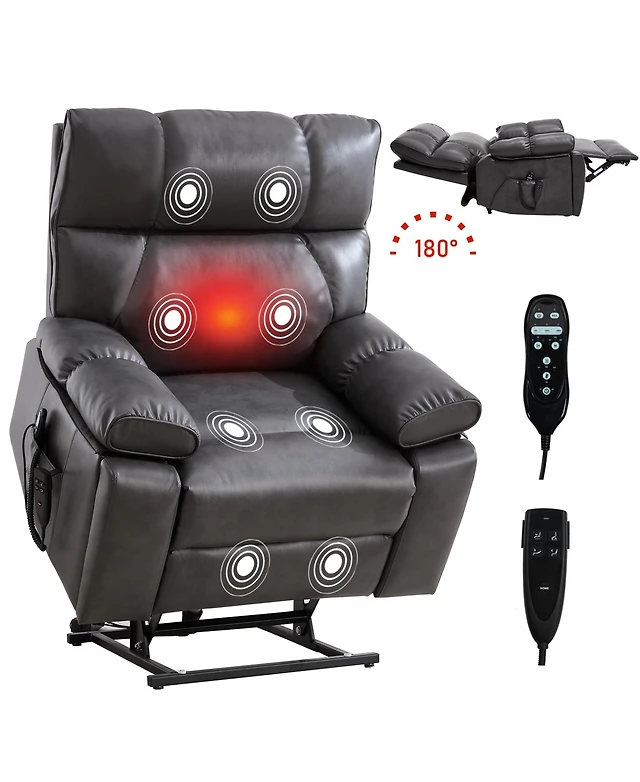 Power Lift Recliner Chair Heavy Duty Motion Mechanism with 8-Point Vibration Massage and Lumbar Heating Stainless steel Cup Holders