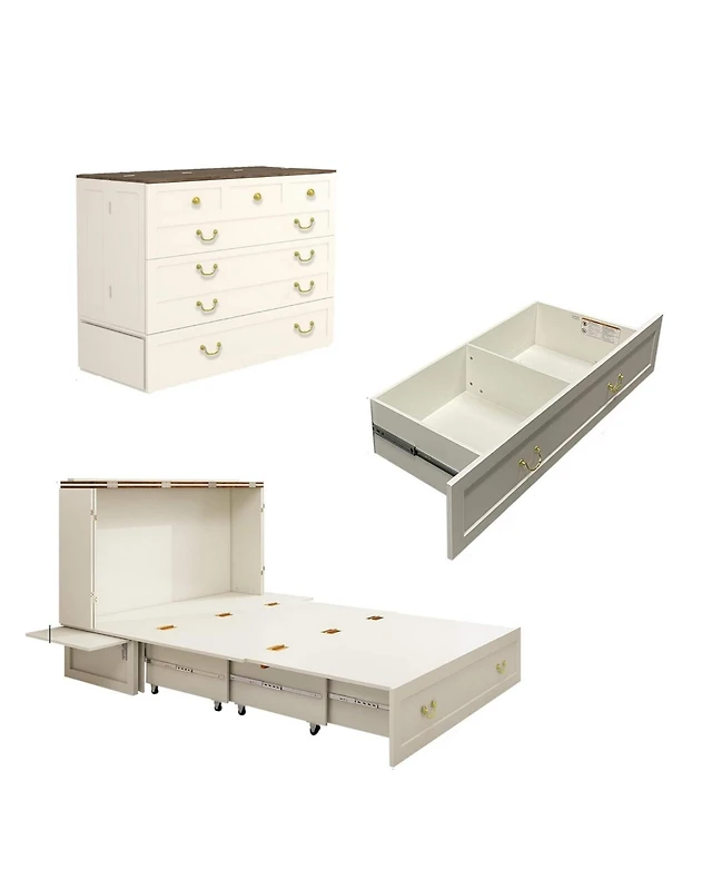 Murphy Bed Cabinet with Drawer Includes Storage Cabinet,Full with Charging and Usb Port, White Twin Murphy Guest Bed No Mattress)