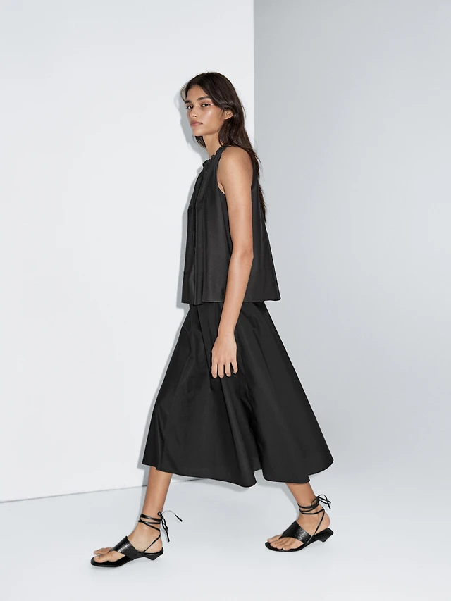 Lands' End Women's Poplin High Rise Bubble Hem Midi Skirt