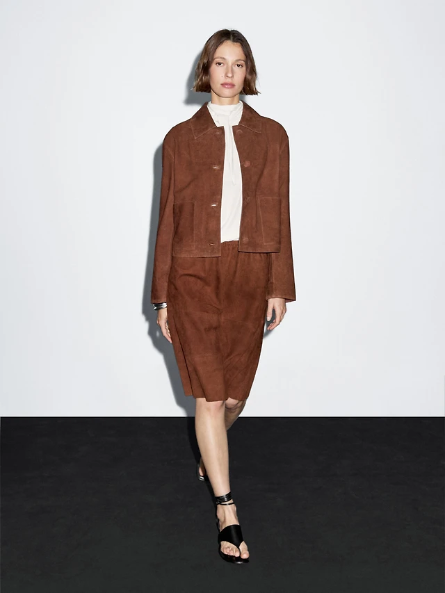 T Tahari Women's Faux-Suede Slit-Front Midi Skirt