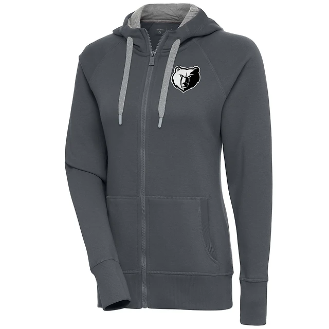 Women's Antigua Charcoal Memphis Grizzlies Brushed Metallic Victory Full-Zip Hoodie