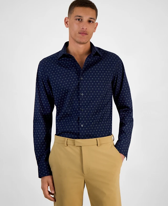 Alfani Men's Slim Fit Long Sleeve Button-Front Geo Print Dress Shirt, Exclusively at Macy's