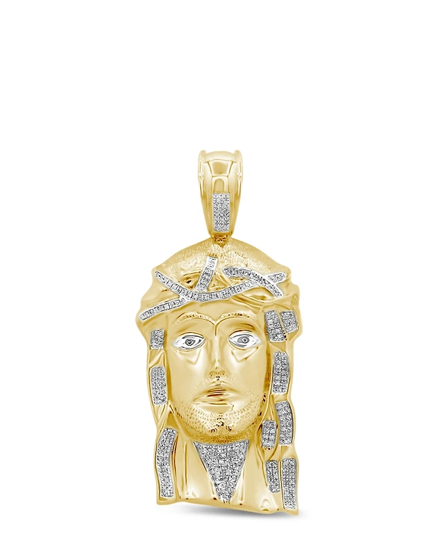 Men's Diamond (1-1/2 ct. t.w.) Christ Head Pendant in 14K Yellow Gold over Sterling Silver
