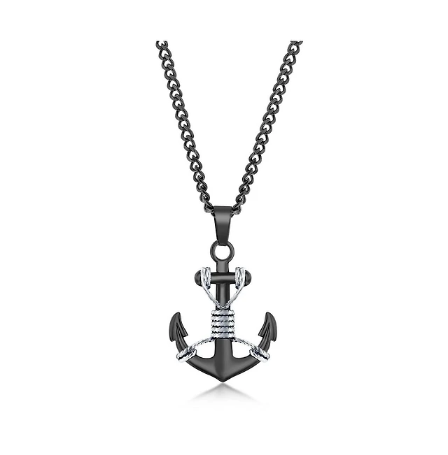 Metallo Stainless Steel Sand Blasted Single Cz Cross Black Plated Necklace