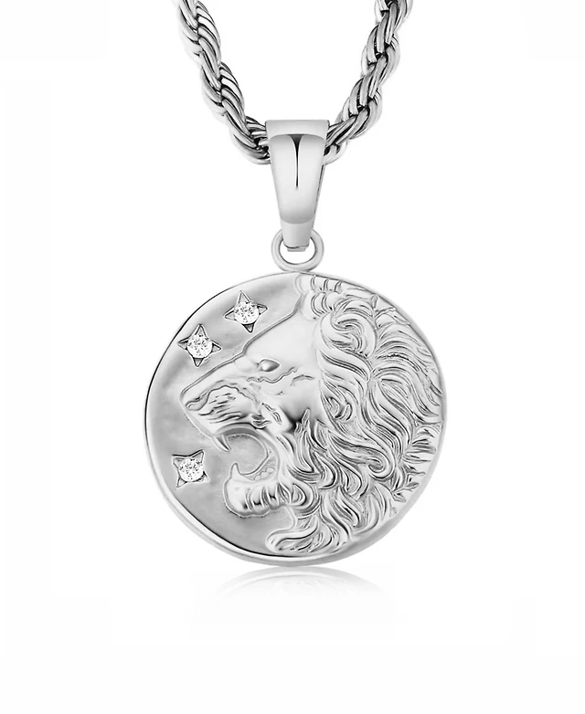 Steeltime Men's Stainless Steel Tiger and Crown Pendant
