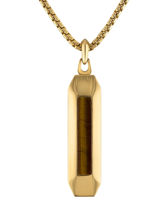 Legacy for Men by Simone I. Smith Men's Cubic Zirconia Dog Tag 24" Pendant Necklace in Gold-Tone Ion-Plated Stainless Steel