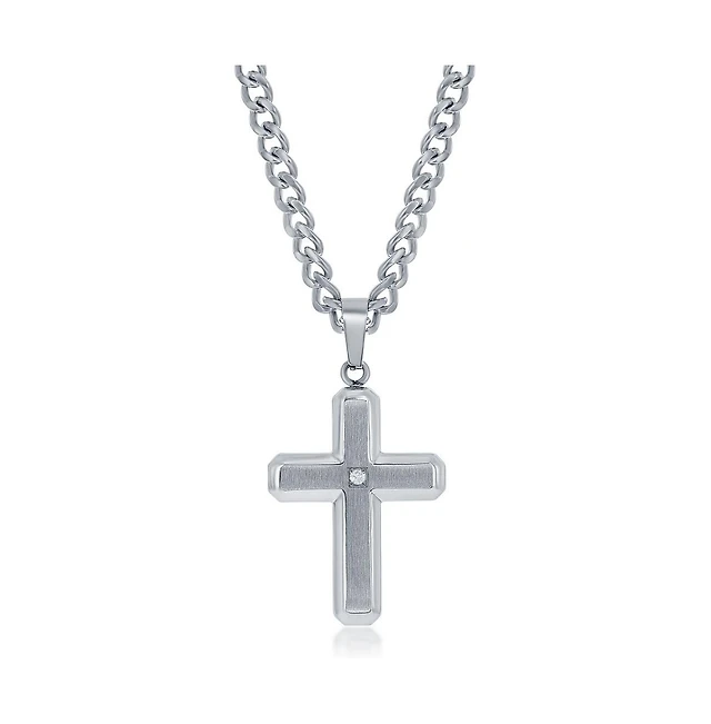 Men's Diamond Accent Gray Carbon Fiber Cross 24" Pendant in Stainless Steel