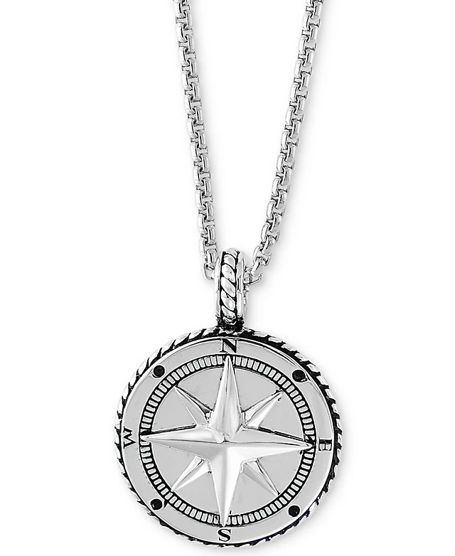 Effy Men's Lapis Lazuli (14-1/2mm) Compass 22" Pendant Necklace in Sterling Silver