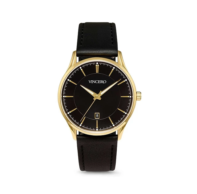 Vincero Men's Black Silver Delta Double Bracelet with Full-Grain Ecco Leather and Magnetic Clasp, Regular