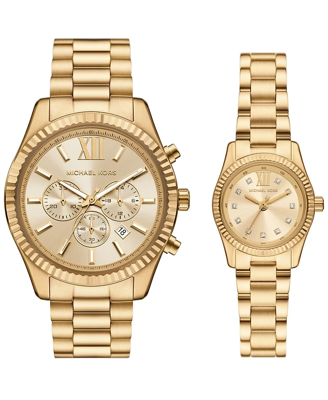 Jones New York Men and Women's Analog Shiny Gold-Tone Metal Bracelet His Hers Watch 40mm, 32mm Gift Set