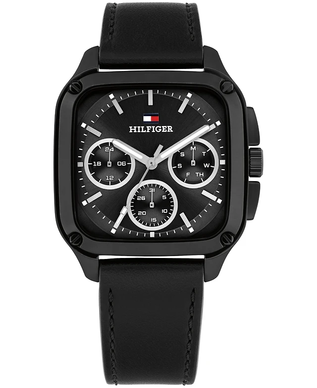 Guess Men's Black Leather & Silicone Flex Strap Watch 43mm