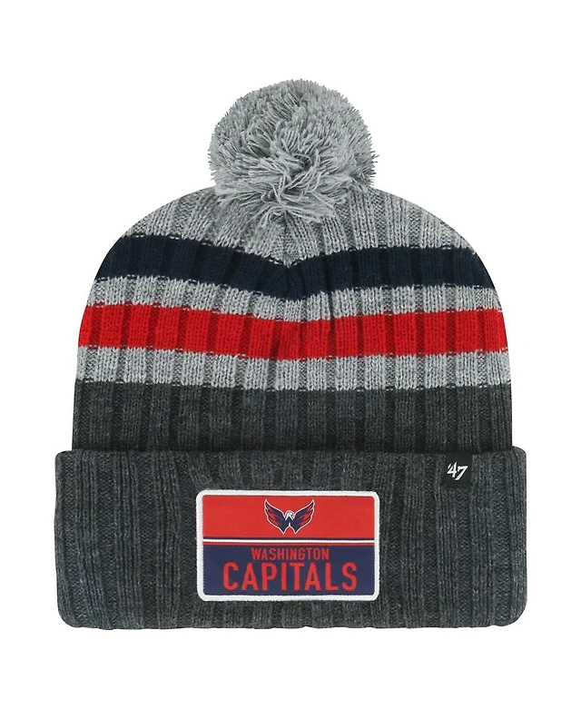 '47 Brand Men's Gray Washington Capitals Stack Patch Cuffed Knit Hat with Pom