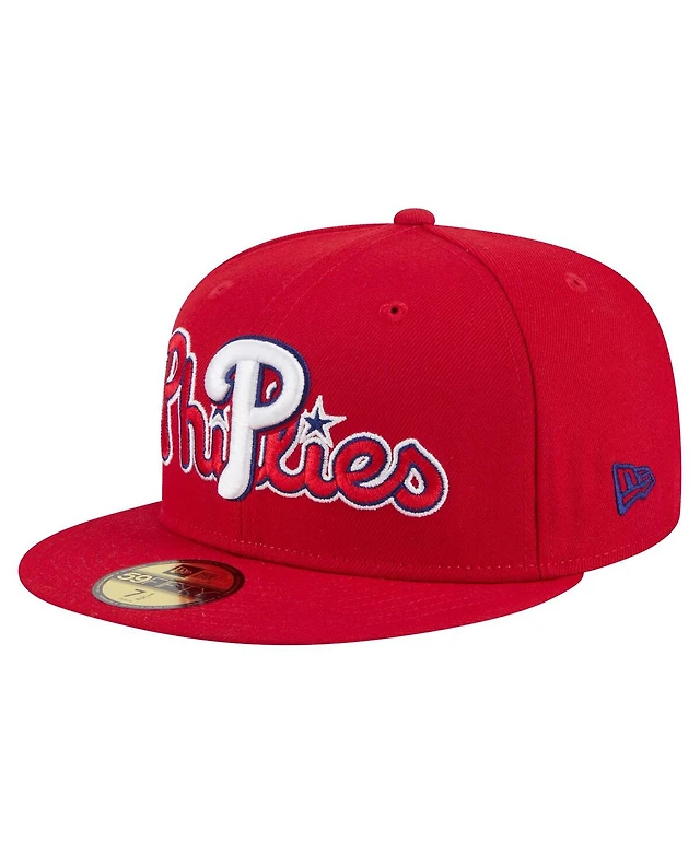 New Era Men's Red Philadelphia Phillies Overlap 59FIFTY Fitted Hat