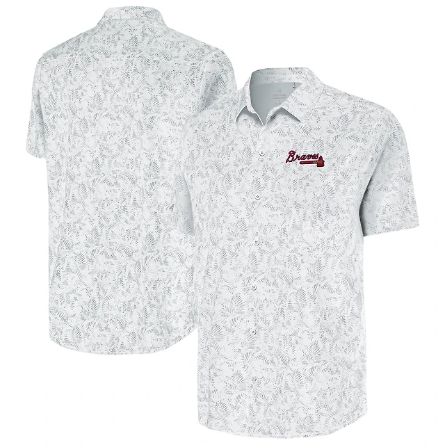 Men's Antigua White Atlanta Braves Lush Button-Up Shirt