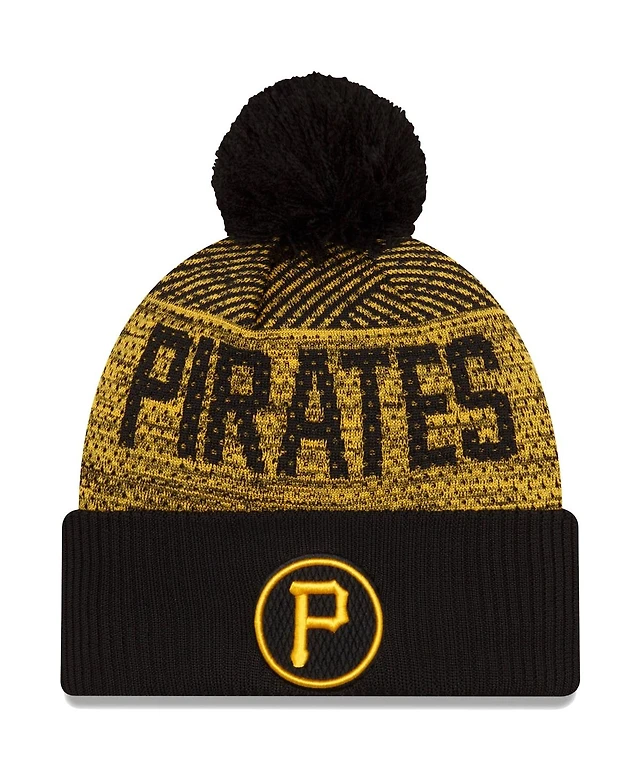 Men's New Era Black Pittsburgh Pirates Authentic Collection Sport Cuffed Knit Hat with Pom